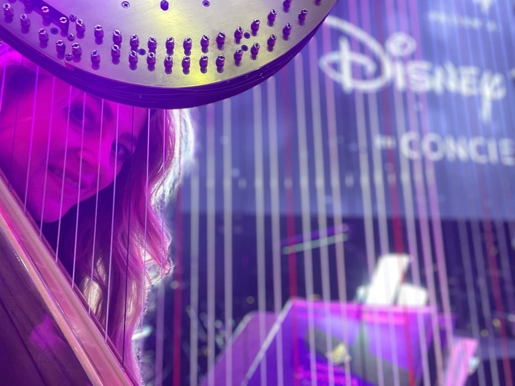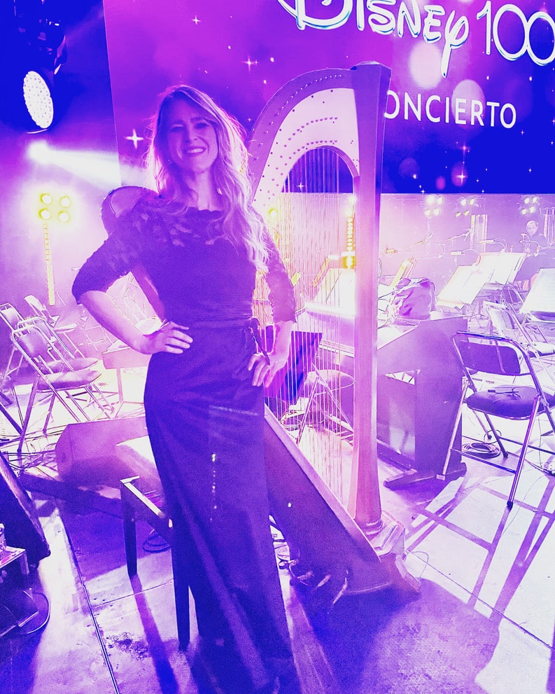 Interpreting works by renowned composers and participating both as a member and guest soloist on multiple occasions. Her ability to adapt to different musical styles and her capacity to blend classical with contemporary elements make her a unique performer in today's musical scene. She has also appeared as a guest harpist and soloist with her work "Luz y Sombra" with the Loja Symphony Orchestra, the Guayaquil Symphony Orchestra, and the National Orchestra of Ecuador, and notably as a guest harpist in the original production of "Disney 100" in April 2023.